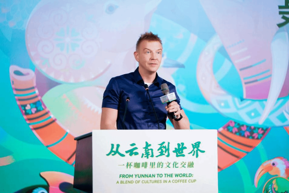 明谦咖啡CEO涂伟城讲述了在沪滇东西部协作项目推动下,明谦咖啡来到澜沧助力当地咖啡产业发展的故事,并表示云南咖啡产业的发展,不仅是一颗颗咖啡豆的升级,更是无数村民生活质量的提升,已然成为乡村振兴的生动写照。
