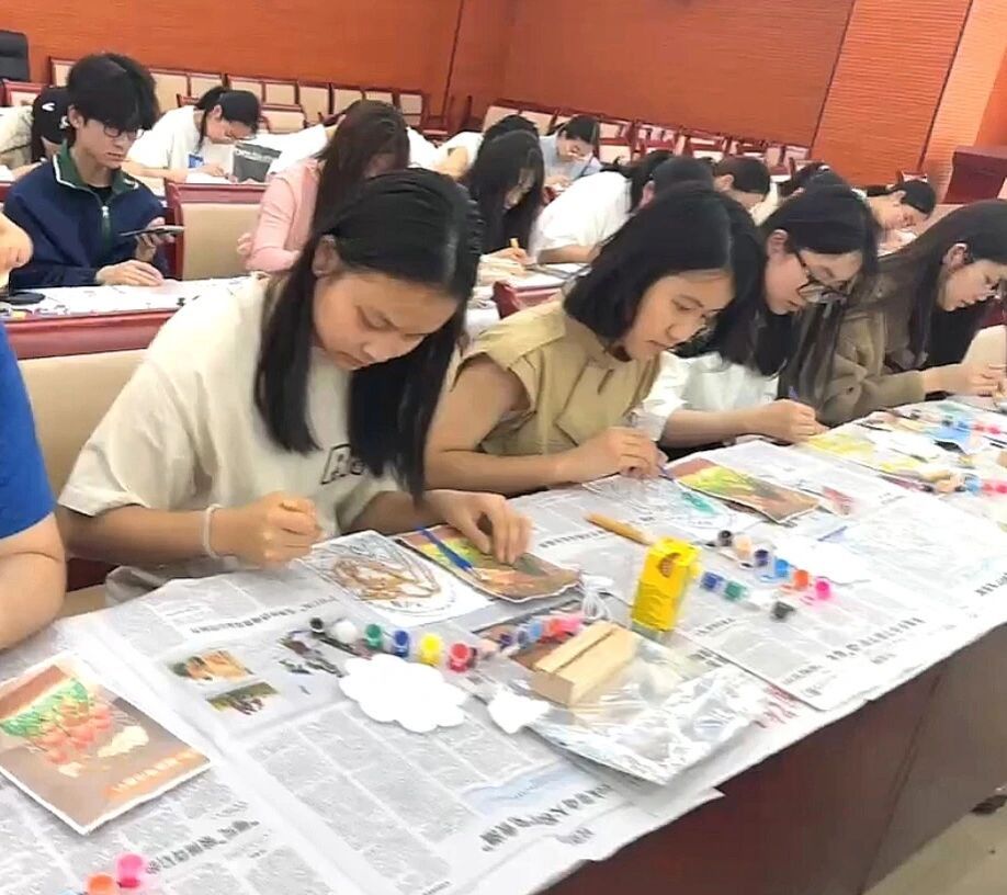 在五四青年节来临之际,为弘扬五四精神,展现青年活力,2025年4月26日下午14:30 - 16:00,北京外国语大学国际新闻与传播学院本科2401新闻班团支部积极响海淀街道团工委“‘琉’光溢彩,点亮青春”五四系列活动,参与了在海淀街道新海大厦办公中心举办的“青年夜校——‘邂逅光影·艺趣交友’玻璃画氛围灯制作活动”。