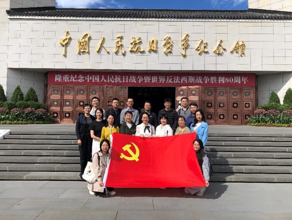在中国人民抗日战争暨世界反法西斯战争胜利80周年的重要历史时刻,为深切缅怀革命先烈、强化使命担当,2025年9月17日,北京外国语大学国际新闻与传播学院教师党支部赴中国人民抗日战争纪念馆开展“铭记抗战历史 讲好中国故事”主题党日活动。全体党员通过沉浸式参观学习,重温抗战历史,接受党性教育。