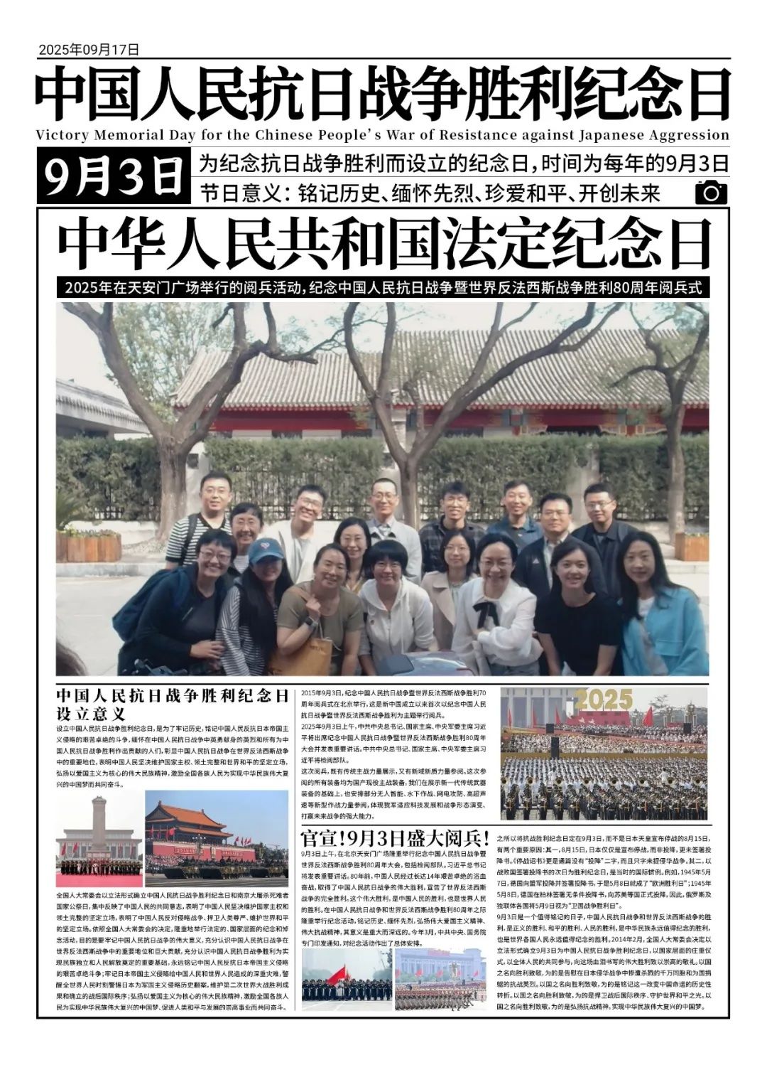 中国人民抗日战争纪念馆以全新面貌对外开放,运用丰富的文物和史料展现抗战历程。馆前14级和8级两组台阶,分别象征着14年抗战和8年全面抗战,让参观者每走一步都能感受到历史的厚重。在纪念馆内,教师们认真观看了《为了民族解放与世界和平》主题展览。展览运用先进的技术手段和多样化展示手法,结合丰富的实物展品、互动装置、历史图片和影像资料,全面再现了在中国共产党倡导建立的抗日民族统一战线旗帜下,中华儿女为国家生存而战、为民族复兴而战、为人类正义而战的雄壮史诗。专业讲解员详细介绍了抗战历史,让大家对这段峥嵘岁月有了更深刻的认识。