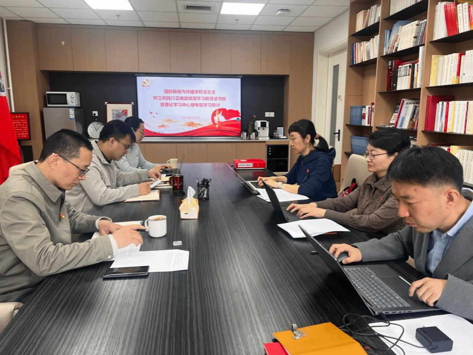 为深入学习贯彻习近平总书记关于树立和践行正确政绩观的重要论述,切实将2026年全国两会精神转化为推动学院“十五五”规划开局起步的具体实践,4月8日上午,国际新闻与传播学院党总支理论学习中心组树立和践行正确政绩观学习教育读书班开展第一次集体学习研讨。